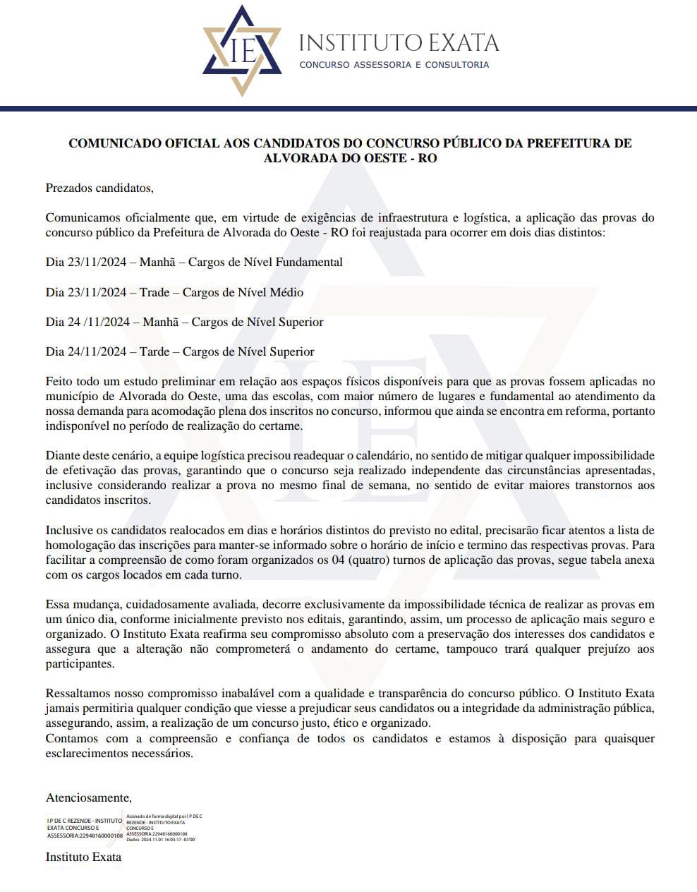 Comunicado aos Candidatos